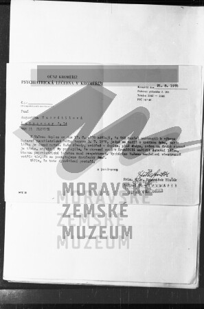 Zamítavá odpověď z Psychiatrické léčebny v Kroměříži na dopis Augustiny Navrátilové, srpen 1978.
