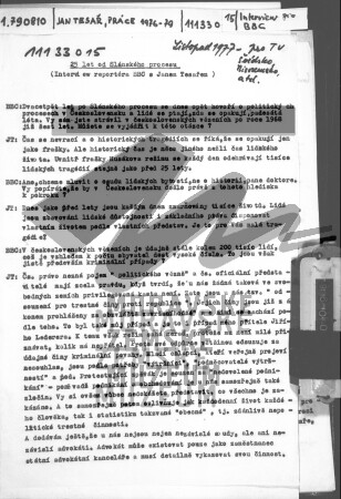 Rozhovor Jana Tesaře pro BBC, listopad 1977.